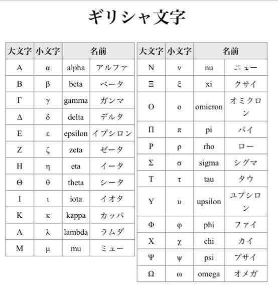 アルファ ベータ デルタなど 全て教えてください ギリシャ文字 Yahoo 知恵袋